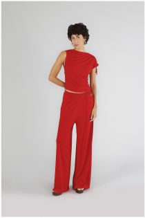 Elegante top asimétrico sin mangas en tejido superelástico con cordón en el hombro y drapeado lateral.