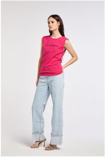 Top sin mangas de algodón elástico con logotipo estampado y botones en los hombros