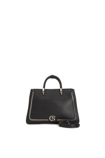 tote con cadena de metal y aplicación de logo black