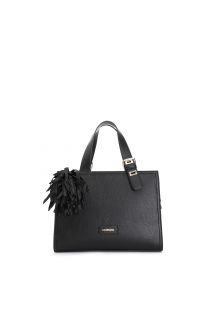 Tote con dije grande de flor de tela asas con hebilla ajustable.