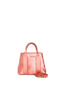 tote de raso con flecos, asas tubulares y bandolera extraíble coral