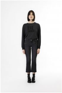 vaqueros cropped de denim flare con perlas en los bolsillos anthracite