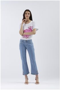 vaqueros denim boot cut con bordado en la parte inferior sky