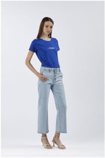 Vaqueros con vestibilidad culotte y botones visibles. fabricado en tela superstretch ultra.
