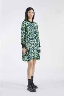 Vestido holgado con estampado animalier, puños altos y escote de punto