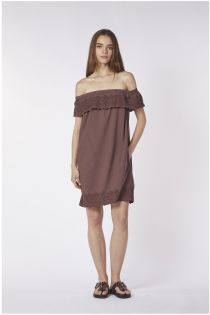 Vestido de algodón con bordado en el bajo y volante. importante escote barco. ideal para los días calurosos o para pasar unas horas junto al mar.