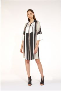 Vestido camisero con manga kimono confeccionado en tejido de viscosa estampada. La pechera y el bajo de la manga están confeccionados con un tejido de color en contraste.