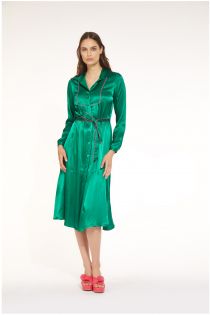 Vestido camisero en raso de viscosa decorado con bordes de raso en contraste