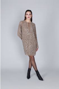 vestido con bordado de pedrería multibeige