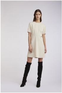 Vestido de cuello redondo y manga corta con corte en la cintura y falda ligeramente acampanada. confeccionado en un cómodo tejido bistretch.