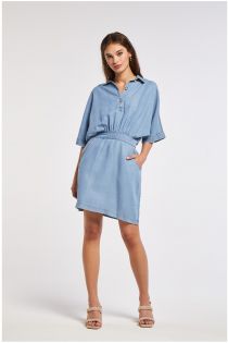 vestido con corte en la cintura fruncido en denim tencel sky