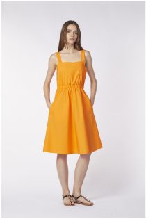 Vestido con elásticos en la cintura y particular escote de pico por detrás