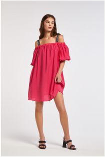 Vestido con mangas abullonadas y tirantes con elástico con logotipo