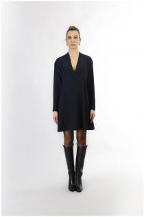Vestido corto con escote profundo y enriquecido con pliegues confeccionado en tejido fluido. prenda versátil de diario para diferentes ocasiones de uso para llevar ya sea con unas botas hasta la rodilla o con mocasines.
