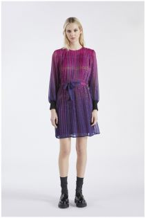 Vestido de corte romántico confeccionado en fil coupé estampado con parte delantera plisada. Cinturón en la cintura que modela todo en las curvas y mangas fruncidas.