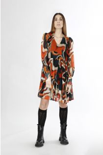 Vestido con volantes en georgette de viscosa estampada con un estilo vivaz