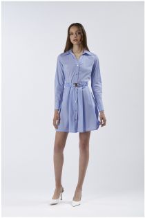 Vestido corto tipo camisero con cinturón de hebilla con logotipo. vestido de manga larga confeccionado en popelina de algodón elástico a rayas.