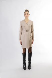 Vestido cruzado confeccionado en tejido elástico de punto milano. vestido de manga larga con escote cruzado. la prenda se completa con un fajín de tela con hebilla con el logo cafènoir. cierre con cremallera invisible en la espalda. prenda diaria versátil para diferentes ocasiones de uso.