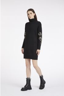 vestido de cuello alto con bordado floral en las mangas