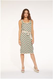 Vestido en hilado de viscosa con rayas diagonales y amplio escote redondo, sisa y cinturón en la cintura