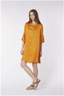 vestido en viscosa con volante en las mangas papaja
