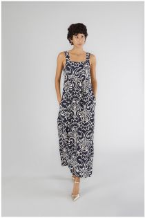 Vestido largo de tirantes en viscosa marroquí con estampado exclusivo. llévalo con sandalias para que tu look sea casual y elegante.