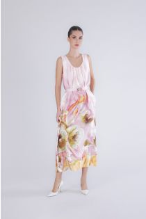 vestido largo de satén estampado pink gradient flower