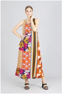 Vestido largo sin mangas confeccionado en un tejido especial de viscosa. disponible en dos variantes de estampado ambas perfectas para cualquier ocasión.
