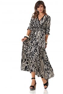 VESTIDO LARGO ESTAMPADO EN RASO DE VISCOSA CON PASAMANERÍA