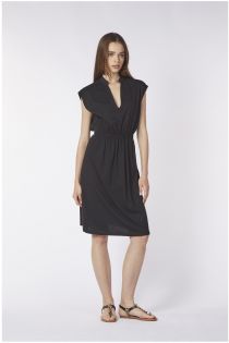 Vestido sin mangas con fajín y cintura elástica confeccionado en una fresca combinación de tejidos de algodón.