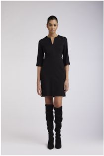 Vestido tipo tubo con mangas 3/4 y un característico escote en "v". fabricado con un cómodo tejido elástico.