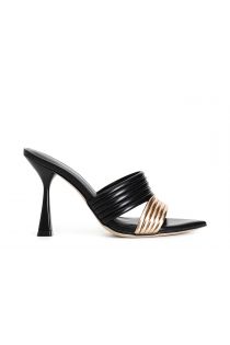 Zapatilla bicolor con tiras acolchadas. plantilla de piel. con su forma estilizada este zapato te dará un toque de elegancia y glamour. tacón de carrete de 90 mm de altura.
