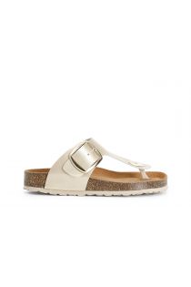Zapatilla tipo chancla para mujer con hebilla. cómodo fussbett de piel de 2.5 cm de altura.
