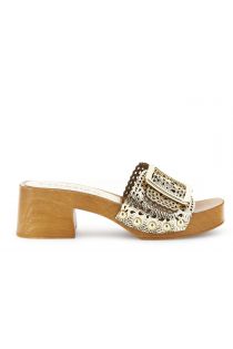 Zapatilla con parte superior perforada. tacón grueso de 6 cm de altura.
