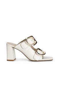 Zapatilla de charol con doble hebilla. corte forro y plantilla son de piel. tacón ancho de 8.5 cm de altura. zapato elegante estiloso y formal.