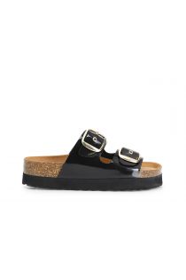 Zapatilla de mujer con doble hebilla. cómodo fussbett de piel de 4 cm de altura.