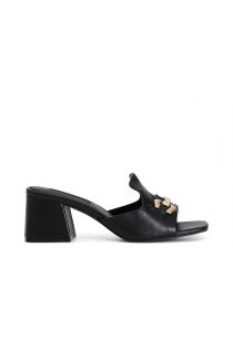 Zapatilla de piel con accesorio dorado. plantilla de piel. tacón de 50 mm de altura.