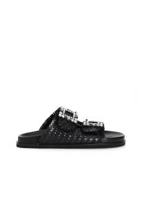 zapatilla de piel trenzada con hebilla de doble joya black