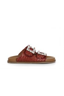 zapatilla de piel trenzada con hebilla de doble joya bordeaux