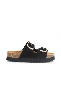 Zapatilla de mujer de piel con doble hebilla. cómodo fussbett de piel de 4 cm de altura.