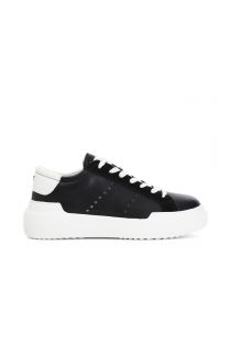 Zapatillas deportivas de mujer con detalles de glitter y tipo espejo en la puntera y cordones estampados. la plantilla es de piel.