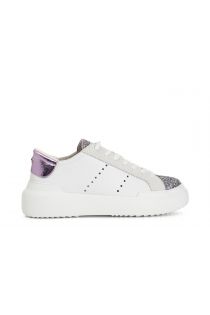 Zapatillas deportivas de mujer con detalles de glitter y tipo espejo en la puntera y cordones estampados. la plantilla es de piel.
