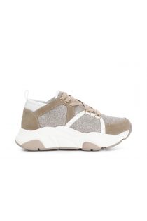 zapatillas de correr con cordones y tela beige/pink