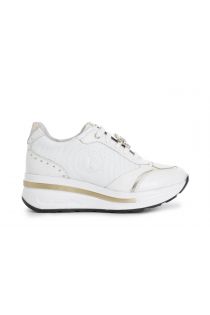 Zapatillas deportivas de piel con bordado acolchado y logotipo cafènoir. en el cordón hay un bonito accesorio joya extraíble en forma de corazón de metal adornado con pedrería. suela alzada bicolor con logotipo en relieve.