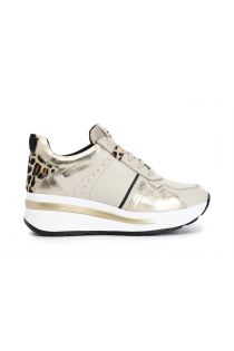 Zapatillas deportivas de piel caracterizada con inserciones de piel de potro y piel laminada. suela alzada bicolor con logotipo en relieve.