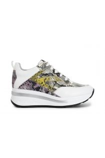 Zapatillas deportivas de piel con cordones y parte superior adornada con patchwork de estampado animal y detalles laminados. suela alzada bicolor con logotipo en relieve.