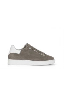 Zapatillas deportivas con cordones para hombre en ante y piel. el forro y la plantilla son de piel. zapato con forma redondeada.