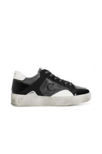 Deportivas para mujer en piel y ante con inserciones de charol y efecto metalizado. logotipo en relieve lateral con monofragma cafènoir. zapato con forma redondeada. cierre de cordones. plantilla interna. suela tipo casete de 30 mm.
