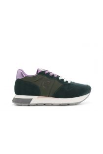 Deportivas de mujer bicolor en ante y tejido. logotipo en relieve lateral con monograma cafènoir. cierre con cordones de colores. plantilla interna. suela de goma multicolor de 30 mm.