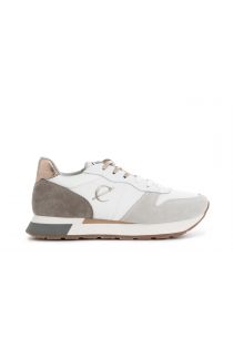 Zapatillas deportivas para mujer en ante y tejido. logotipo en relieve lateral con monograma cafènoir. cierre con cordones de colores. plantilla interna. suela de goma multicolor de 30 mm.